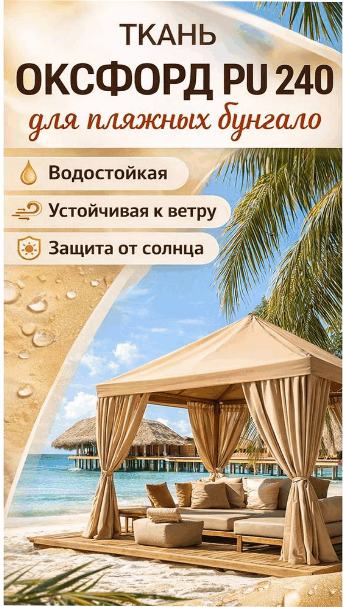 Ткань Оксфорд 240 D WR/PU 115+/-5гр.м2 рул 100м гладь